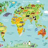 Anaglypta Wall-art Kids World Map Animals Wall Mural - 5451