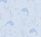 The soft pastel blue tones and hand-drawn style create a soothing environment, perfect for nurseries, toddler rooms, or any little one who loves the ocean. Each dolphin and sea creature is illustrated with friendly charm, encouraging imagination and exploration.