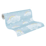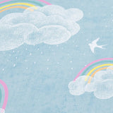 Bring sunshine and smiles to any child’s room with this Wallpaper. Featuring fluffy white clouds, pastel rainbows, and gentle showers drifting across a calming sky-blue backdrop, this design captures the simple joy that comes after the rain. Delicate white swallows add a touch of freedom and whimsy, making every wall feel alive with gentle movement and wonder.