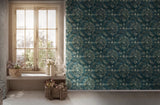 This beautiful lightly textured ornamental baroque design in shades of teal and gold will give a touch of class and elegance to any room.