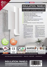 Professional Insulation Panels are high density and fire retardant treated polystyrene panels. Because the panels are made from extruded polystyrene they achieve much higher density per square inch, which in turn provides higher levels of thermal insulation when compared with other polystyrene materials. Apart from good thermal insulation levels, the Professional Insulation Panels help with combating condensation issues and provide an effective way to hide problem surfaces such as cracked plaster.