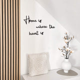 Made in a beautiful script type font, this meaningful statement provides a beautiful talking point to your wall. This lettering with profound meaning sets a visual highlight on the wall, providing a comfortable living atmosphere. Radiate a positive mood with the well-known proverb. Perfect for all rooms in the home. The product is made from MDF and the words can be placed how you wish. 'Home' measures 26cm x 15cm; each 'is' measures 7cm x 6cm, 'where' measures 24cm x 6cm, 'the' measures 13cm x 8cm and 'heart' measures 19cm x 8cm. Please be aware that this item is shipped in sheets to protect the product and it will need to be pushed out, best results are when the pieces are pushed out from the back, to the front. The different parts of the design can be arranged anyway to suit individual preference. Please note that this product is not suitable for outdoor use.
