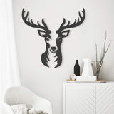 3D Wooden Stags Head Motif - black - 60cm x 63cm